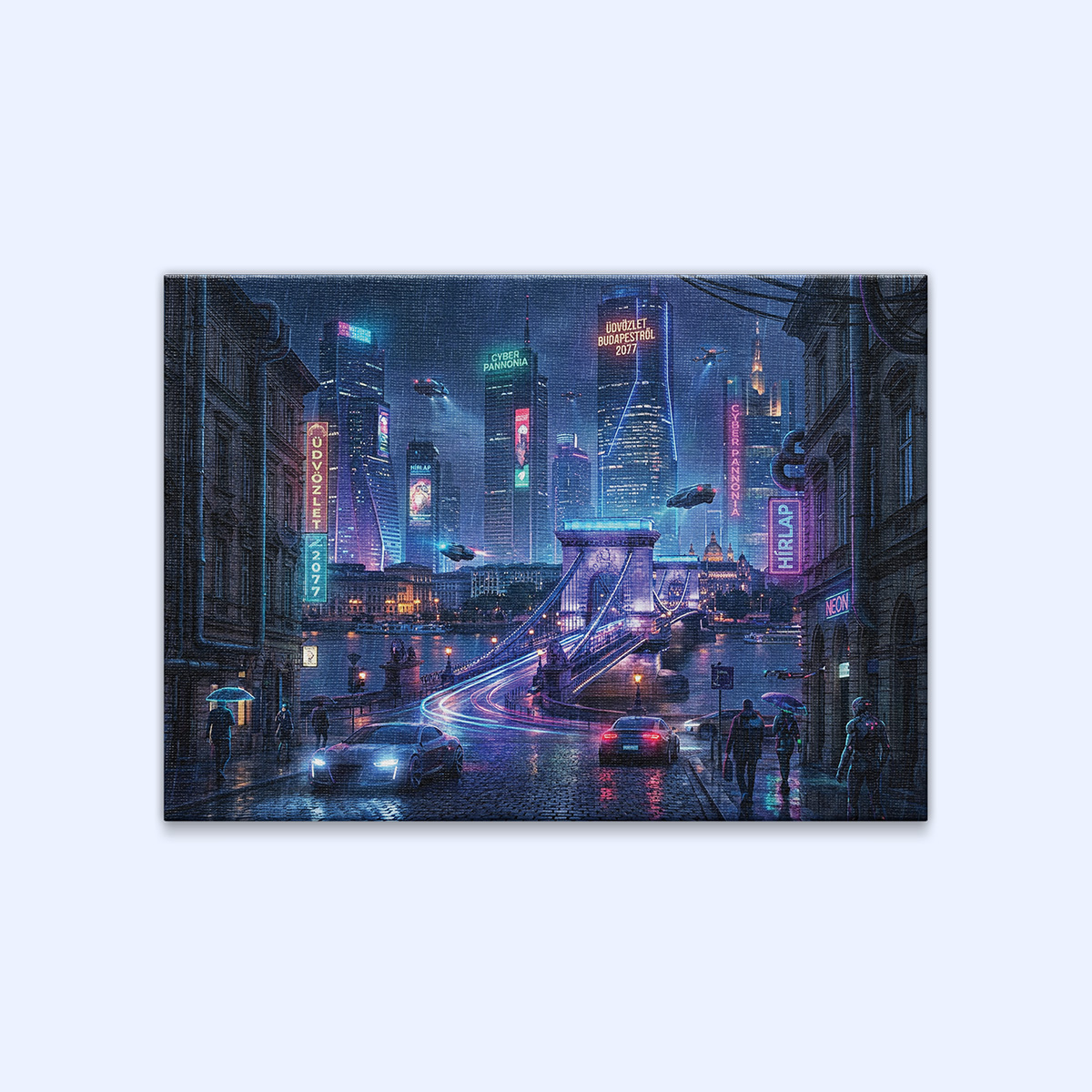 Ez a vászonkép egy mesterséges intelligencia által generált digitális műalkotás, amely a modern technológia és az esztétikus vizuális megjelenés találkozásából született.