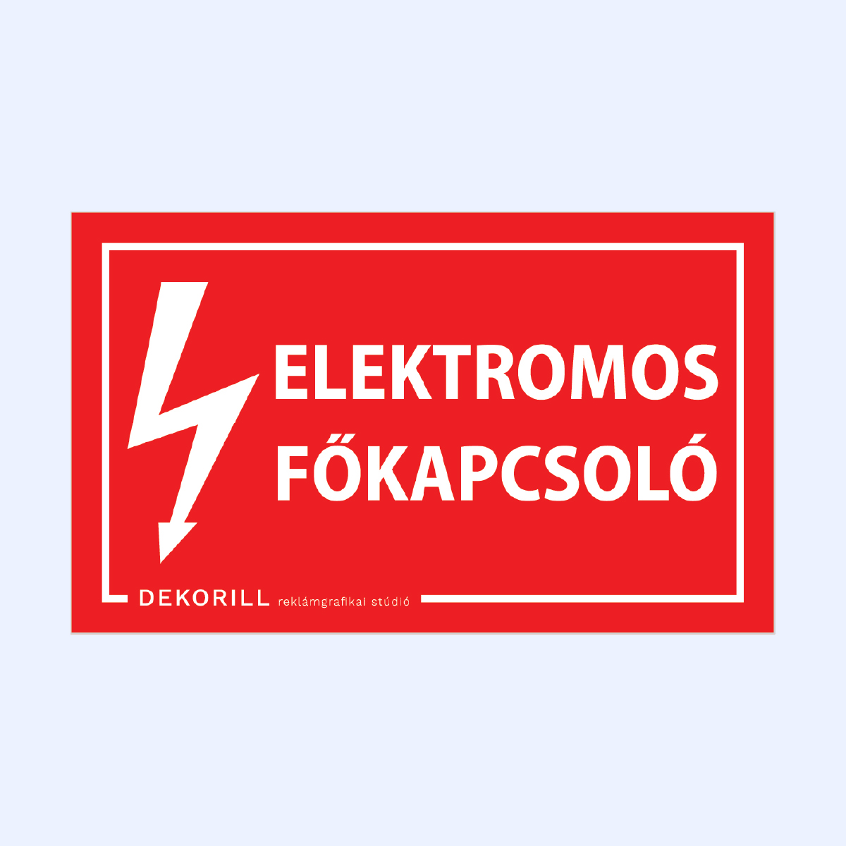 Jelölő matrica elektromos főkapcsolóhoz. Időtálló, jól olvasható kivitel a gyors és biztonságos beavatkozáshoz.