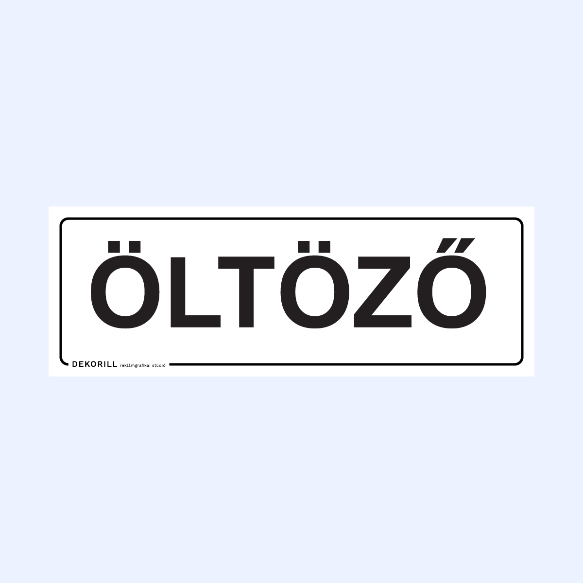 Öltöző feliratú matrica vagy tábla helyiségek jelölésére. Egyszerű és jól látható megoldás dolgozók vagy vendégek számára.