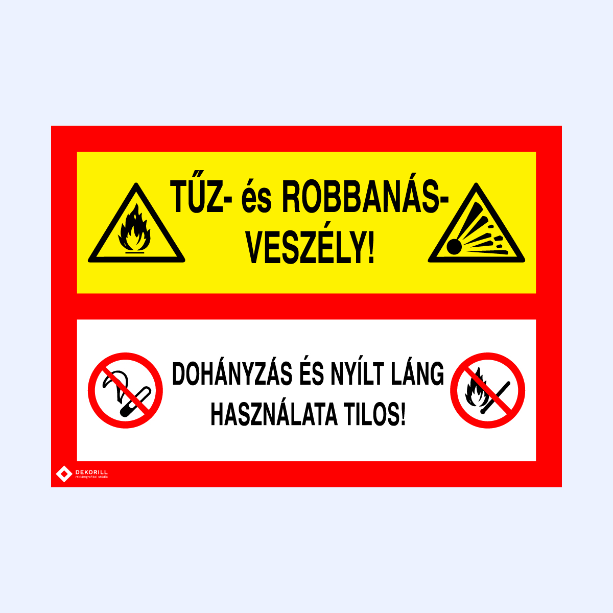 Figyelmeztető matrica vagy tábla, amely tűz- és robbanásveszélyes környezetre hívja fel a figyelmet. Alapvető biztonsági jelölés.