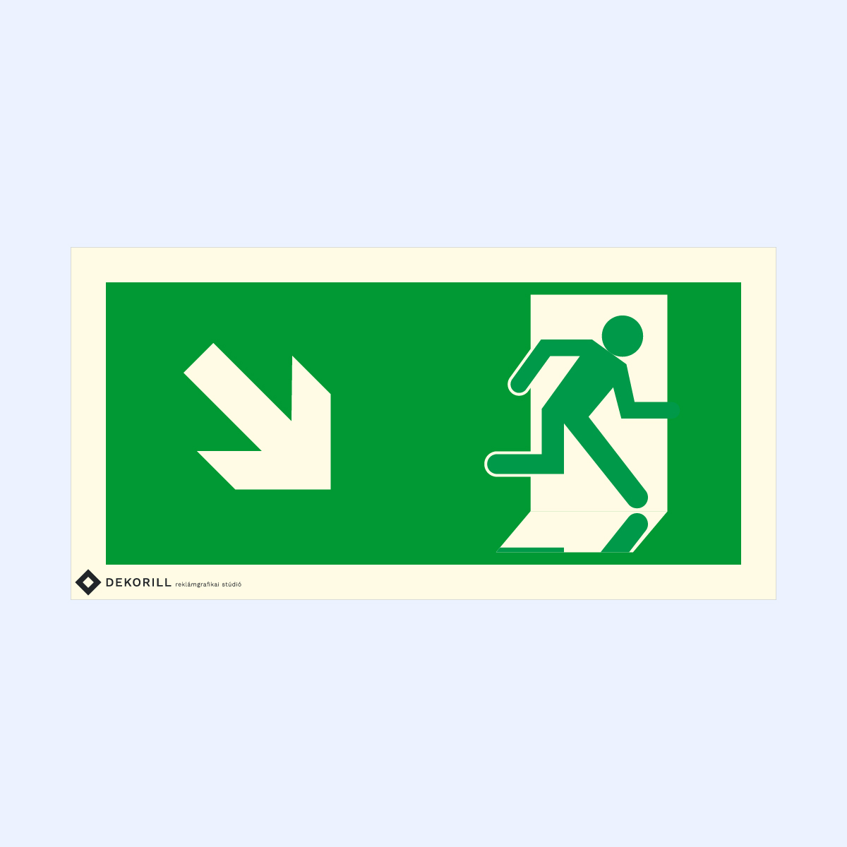 Utánvilágító fóliára nyomtatott, jobbra és lefelé mutató vészkijárat jelölő matrica. Elérhető táblaként és külön matricaként is.