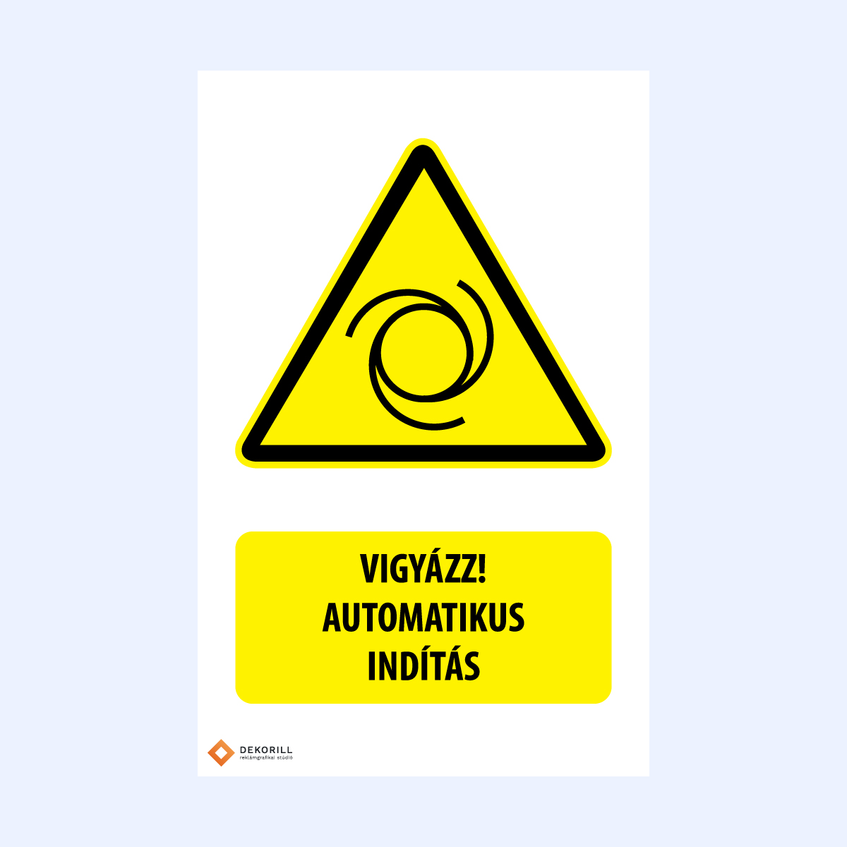 Vigyázz! Automatikus indítás feliratú matrica vagy tábla gépek váratlan automatikus működésére figyelmeztet. Sérülésveszély megelőzésére.